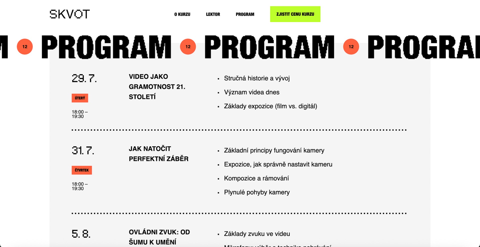 Když jsem poprvé zmínil na svých sítích informaci, že stavím kurz videotvorby pod vzdělávací platformou SKVOT, dostal jsem od pár známých trošku kartáč. Často šlo i o lidi, kteří jsou v oboru dlouho a specializují se na konkrétní profesi, ve které jsou fakt dobří.